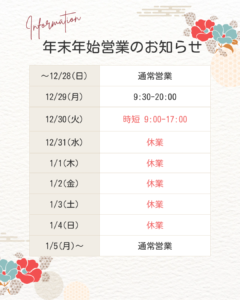 12月31日(水)~1月4日(月)まで